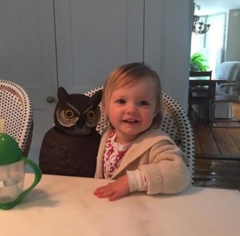 The love between a little girl and a plastic, hand-painted, rotating-head horned owl decoy cannot be denied.