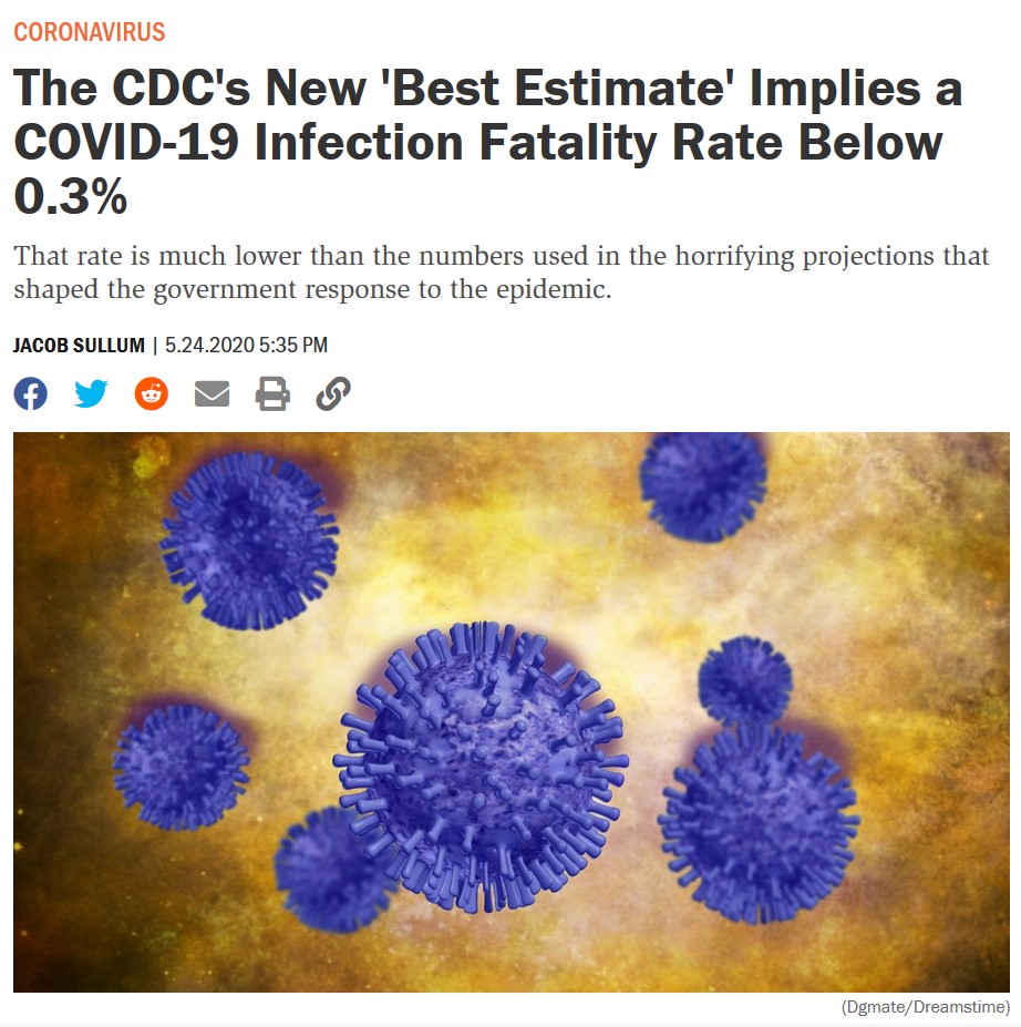 Like all good science, the Stanford data on IFR has now been replicated so many times that our own Centers for Disease Control came out this week to announce that their ‘best estimate’ showed an IFR below 0.3%. In this article on the CDC’s new data, they also highlighted how the cascading declines in IFR has removed all the fears of doomsday: