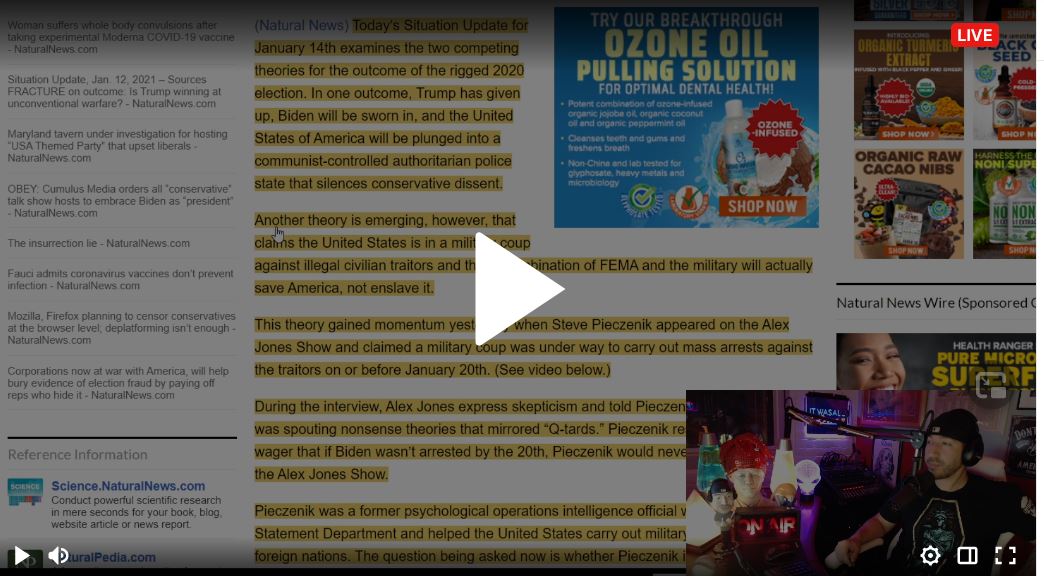The Situation Update for Jan. 15th, 2021 covers five key breaking stories, all with “bombshell” implications for world events: Capitol raid official narrative collapse; CNN complicit in [Continued at source…]