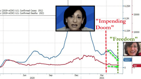 Now, just 6 weeks later, as all the doomsaying, fearmongering, panic-inducing double-speak was proven completely misplaced, and amid political pressure from even the leftest of leftists to “do something”, the masks are off and freedom (for the vaccinated) is offered back to ‘we, the people’.