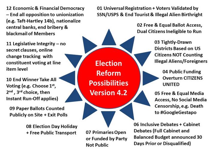 Previous election reform proposals have consisted of fragmented, isolated elements that will not work without a larger, more coherent approach – one that closes all the trap doors that the 1% use to create a Congress chock full of traitors.