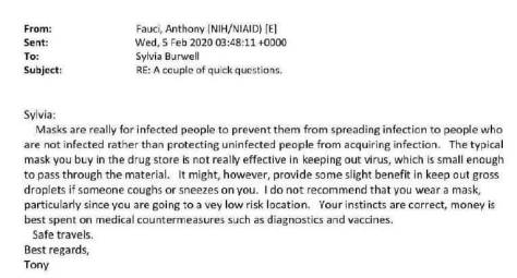 We also know that while Fauci was demanding that we all wear at least two face masks or we would all die from Covid, he privately told his friends that face masks were useless against the virus: