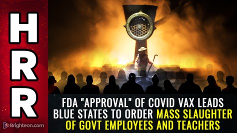The FDA’s fraudulent “approval” of the failing Pfizer covid vaccine is all that leaders of blue cities and states needed to order the mass slaughter of their own employees. In mere hours after the FDA’s announcement yesterday, the State of New Jersey ordered the mass slaughter of all NJ teachers and state workers via spike protein injections, a “clot shot” that has already killed an estimated 500,000 Americans (and counting).
